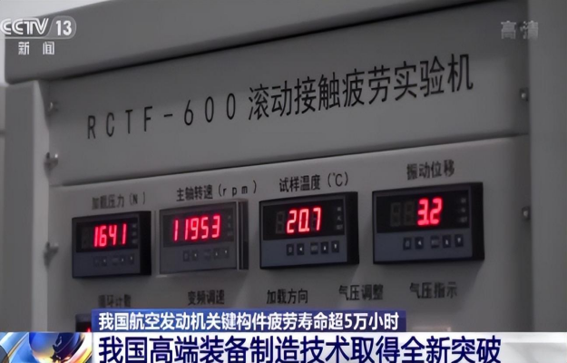 此次进行疲劳试验的关键构件是由我国自主研制的航空发动机主轴承,在试验器上等效加速试验疲劳寿命5万小时未失效,创造了我国新的纪录。
