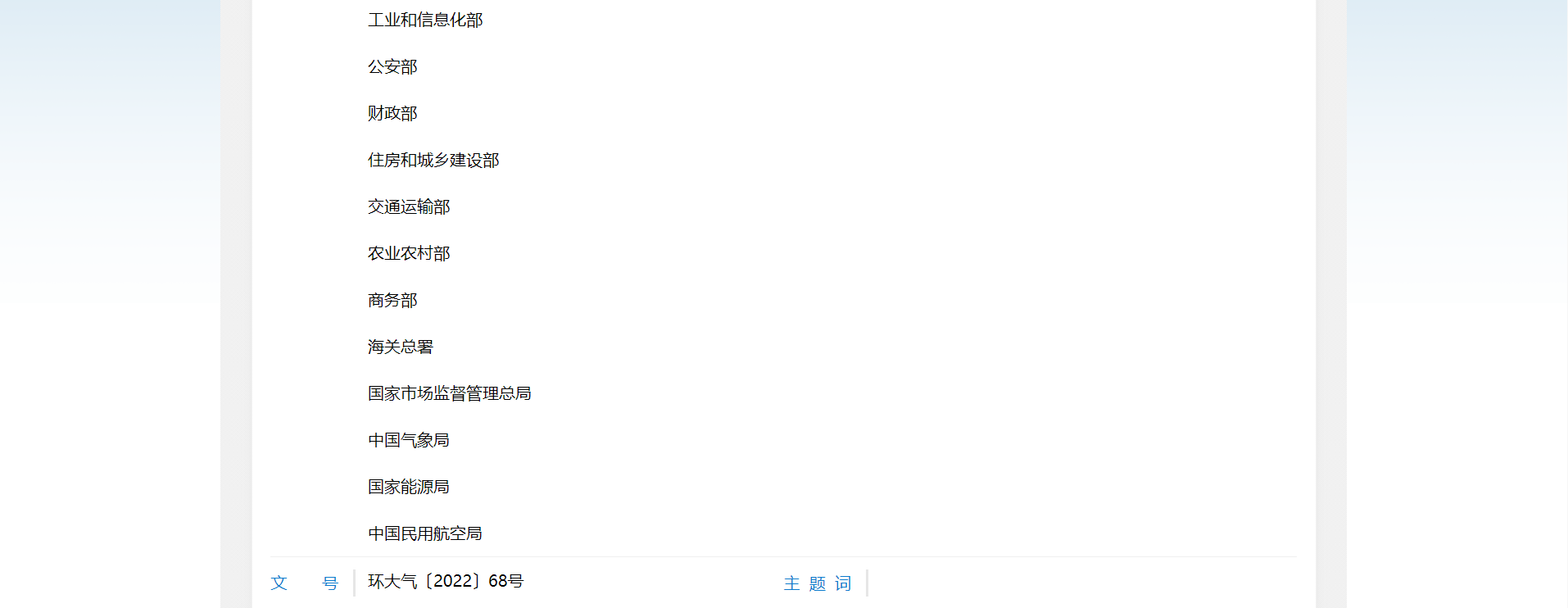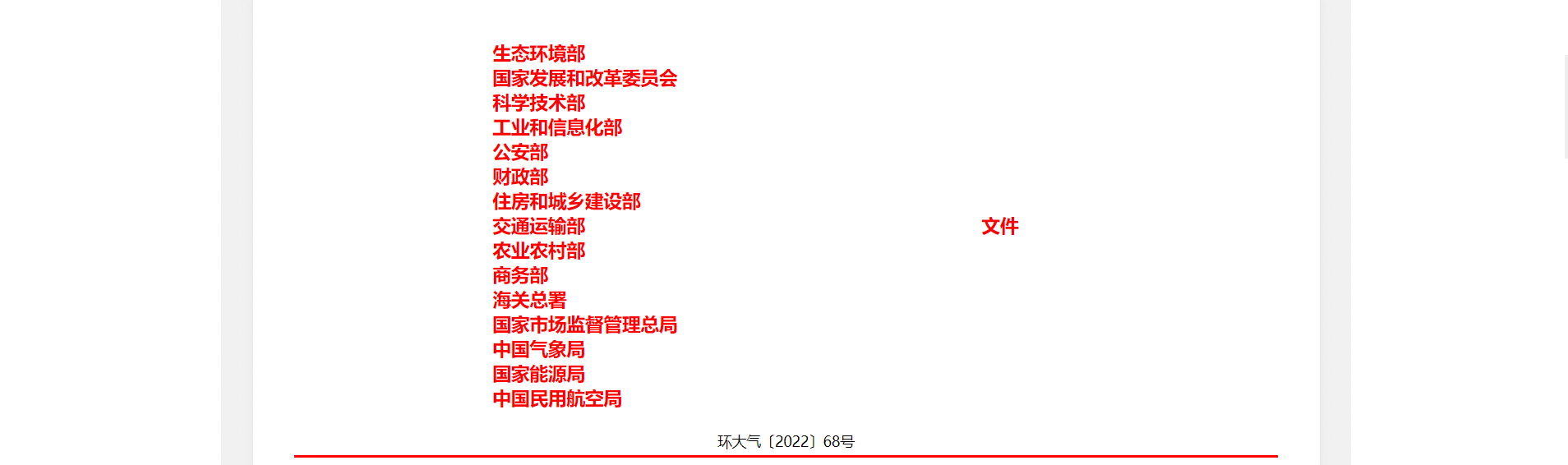 各省、自治区、直辖市、新疆生产建设兵团生态环境厅(局)、发展改革委、科技厅(局、委)、工业和信息化主管部门、公安厅(局)、财政厅(局)、住房和城乡建设厅(局、委、管委)、交通运输厅(局、委)、农业农村(农牧)厅(局、委)、商务厅(局)、市场监管厅(局、委)、气象局、能源局,海关总署广东分署、各直属海关,民航各地区管理局: