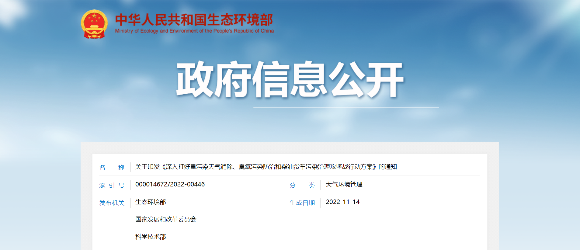 深入打好重污染天气消除、臭氧污染防治和柴油货车污染治理攻坚战行动方案