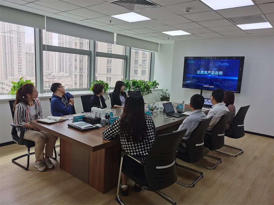 研讨会上,宗处长听取了吴国峰董事长对中科宝鹿的介绍、新材料智造工厂规划和企业当前面临的难题,并给出了积极的回应,表示对中科宝鹿的科学技术和新材料的高度认可,中科宝鹿新材料智造工厂全面引进国内外领先水平的生产设备,并采用智能化、标准化、程序化的生产系统,可满足多种还原液的生产需求,将打造成为国内技术领先的绿色工厂。